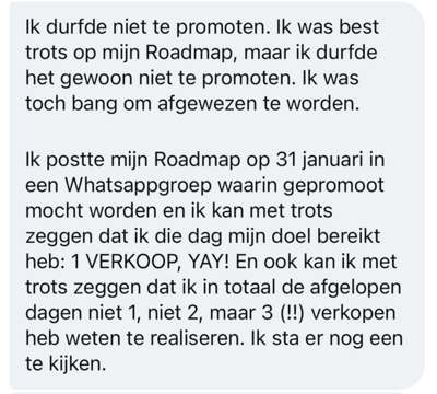 Heb je na 60 dagen nog géén online product, dan krijg je een extra 1:1 check-in met Maxine én 30 dagen individuele follow-up via Whatsapp, aangeboden in de maand(en) volgend op je garantieperiode.